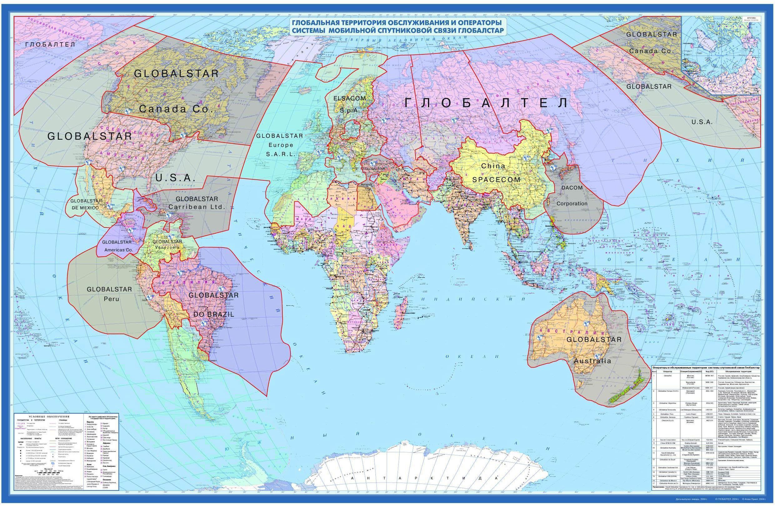 Карта покрытия Глобалстар